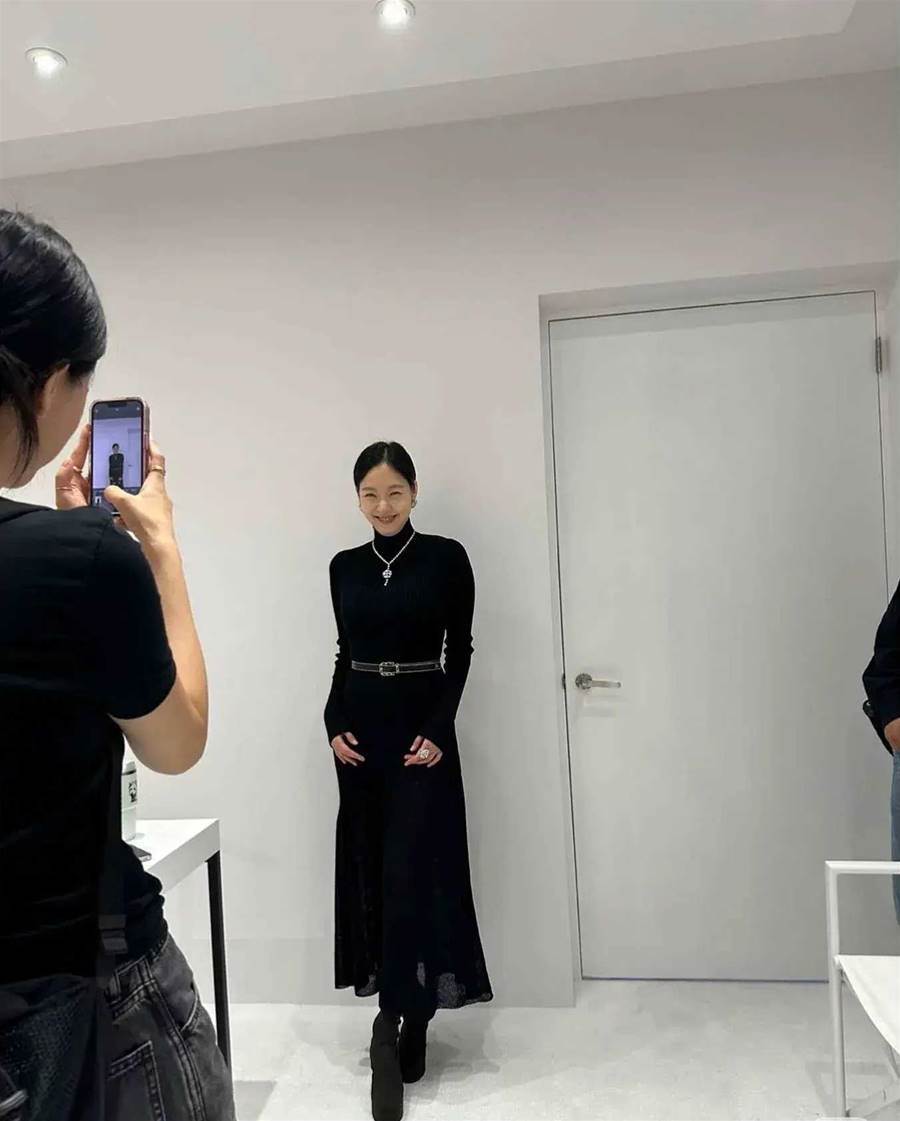 金高銀和Chutimon的合影,金高銀身穿一襲黑色長裙,鞋子則是黑色防水台高跟鞋,看起來比較厚重。泰國女星Chutimon則是一襲長裙,不過她比例著實有點不太好看,脖子怪長,顏值也算泰女星里很一般的。