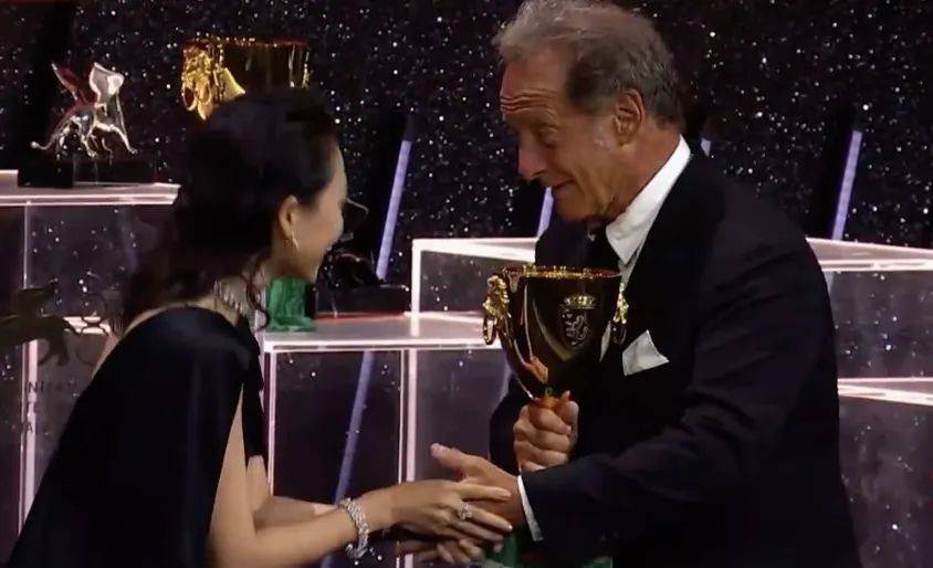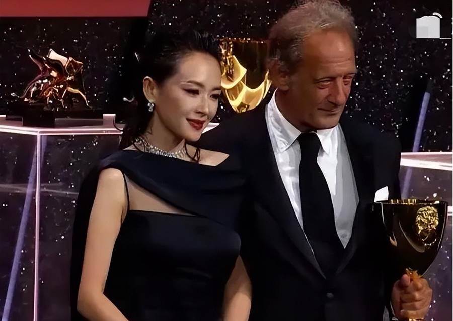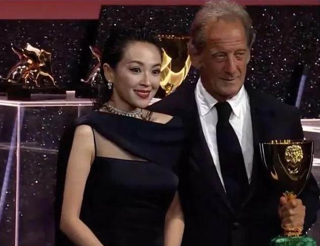 當章子怡作為頒獎嘉賓,為65歲的法國影帝文森特·林頓頒發「最佳男主角」時,林頓老爺子在行貼臉禮時,竟然直接在章子怡臉上親了一大口!