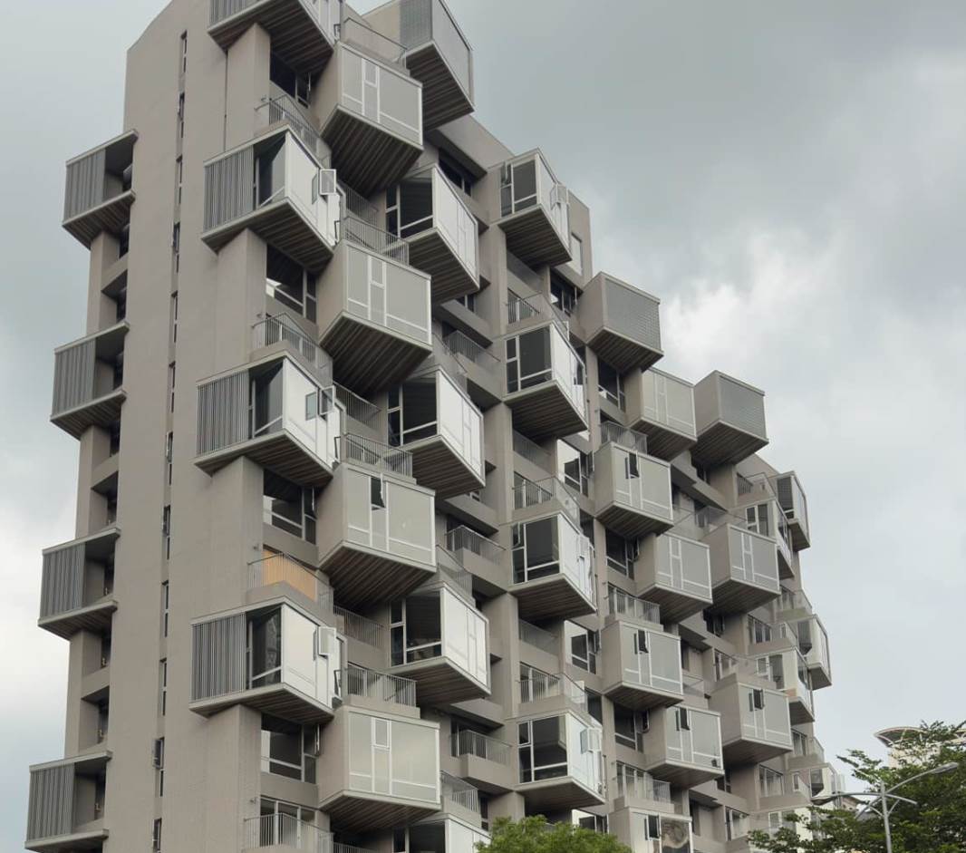 張小姐是這棟大樓的住戶之一,每天上上下下她不禁感嘆:「他們是想著梵高的藝術,但我們卻要忍受這房子夏天曬得像烤箱。」每次她從三樓的小小凸陽台往外看,總能看到對面大樓一戶戶居民也和自己一樣苦笑著碰面。