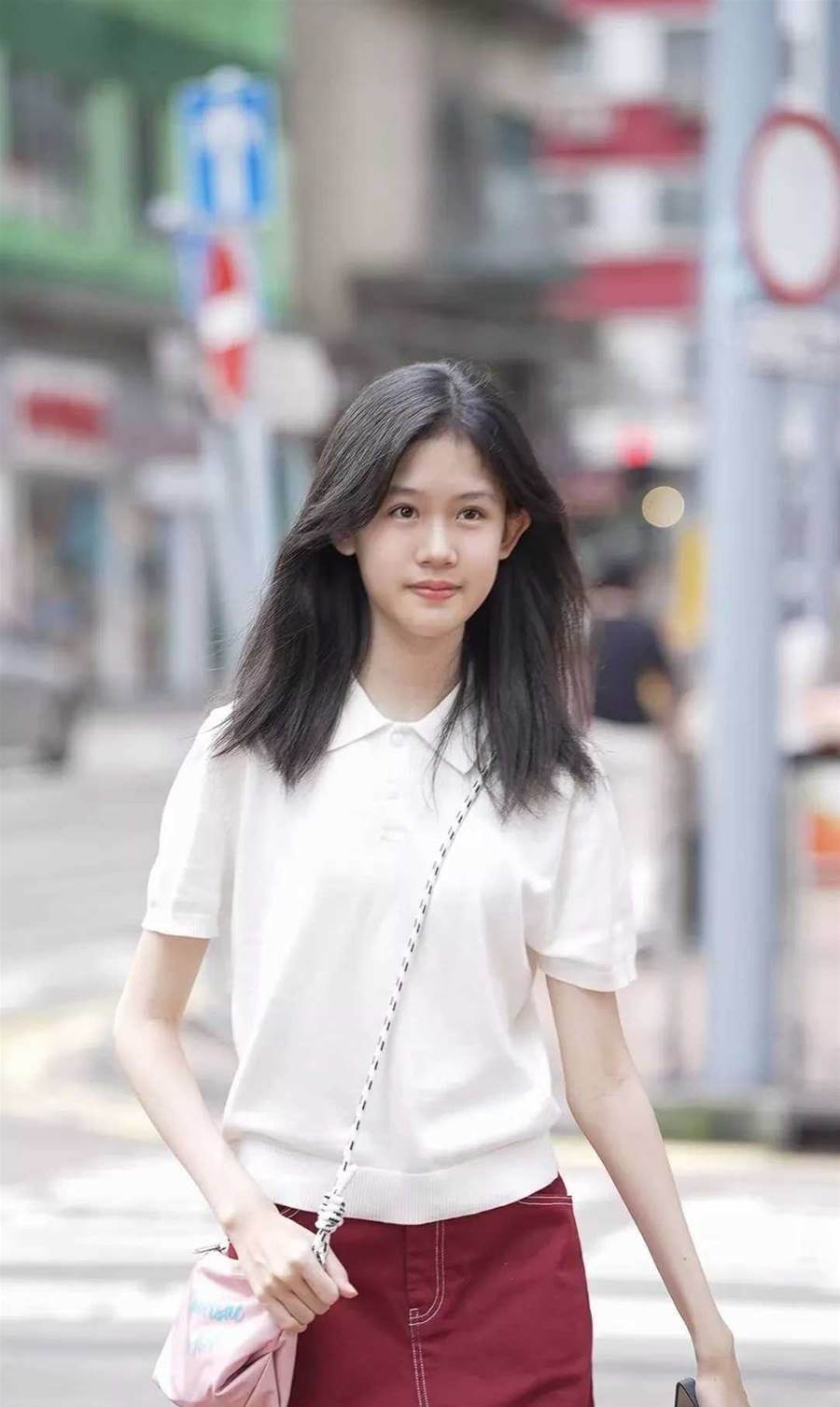貝兒此次的街拍風格展現出了獨特的復古港風美感,身穿白色針織polo上衣和紅色牛仔裙,簡單卻不失青春氣息。特別是那種混合著淡淡的懷舊氣息,仿佛讓人看到了八九十年代港片女主角的影子。
