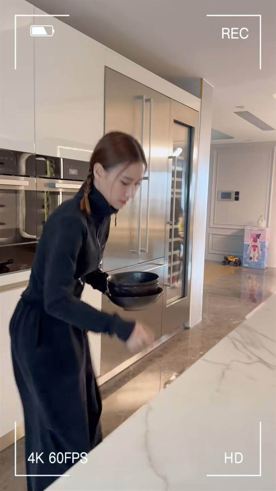 影片中所見,豪宅內以白色及木色簡約布置為主,李蘊身后有張米色沙發,后面的飯廳位置同樣闊落,有巨型圓桌,且樓層極高,眾人還一起玩游戲。