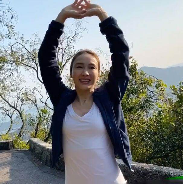 當天陽光正好,天色湛藍,是個適宜戶外鍛煉的好日子,黎姿的行裝也輕便簡單,只穿了一件白色內搭體恤,配藍色帽衫和黑色運動長褲就外出爬山了。一路上幾乎沒有人,而黎姿也解放天性的沒戴口罩,暢快的呼吸戶外的新鮮空氣,從背影看,黎姿身材依舊苗條纖細。