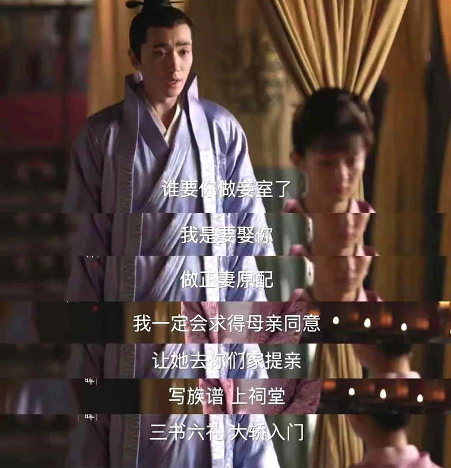 回憶起齊衡和明蘭感情的巔峰時刻,是在馬球賽后。齊衡在玉清觀鄭重地對明蘭表示:「誰要你做妾室了,我是要娶你做原配正妻,我一定會求得母親同意,讓她去你們家提親,寫族譜上祠堂,三書六禮,大轎入門」