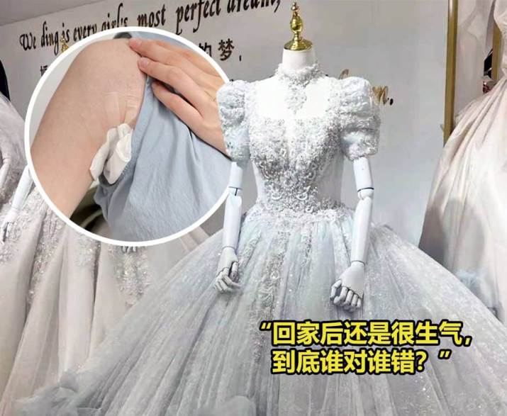 事情并未因此結束,雙方當場發生了激烈的爭執。顧客認為,婚紗是試穿商品,店內也未明確告知試穿可能導致這樣的后果,而店員的要求簡直「無理取鬧」。她更表示,自己在試穿前和其他顧客一樣,并未做出任何可能損壞婚紗的舉動。而店員則堅持認為,婚紗試穿后產生了「無法去除的味道」,因此顧客有責任買下這件婚紗。
