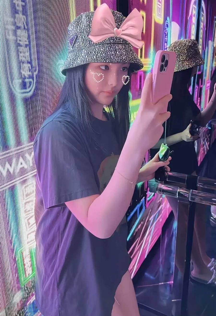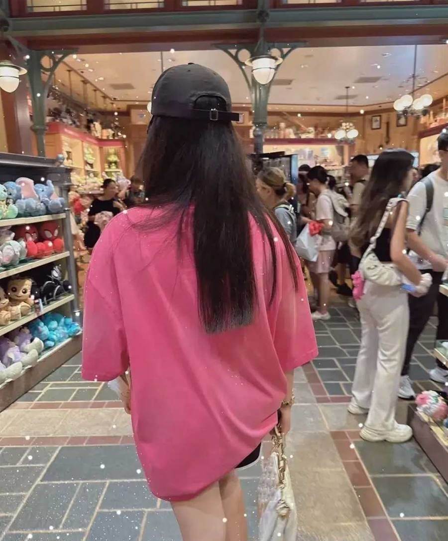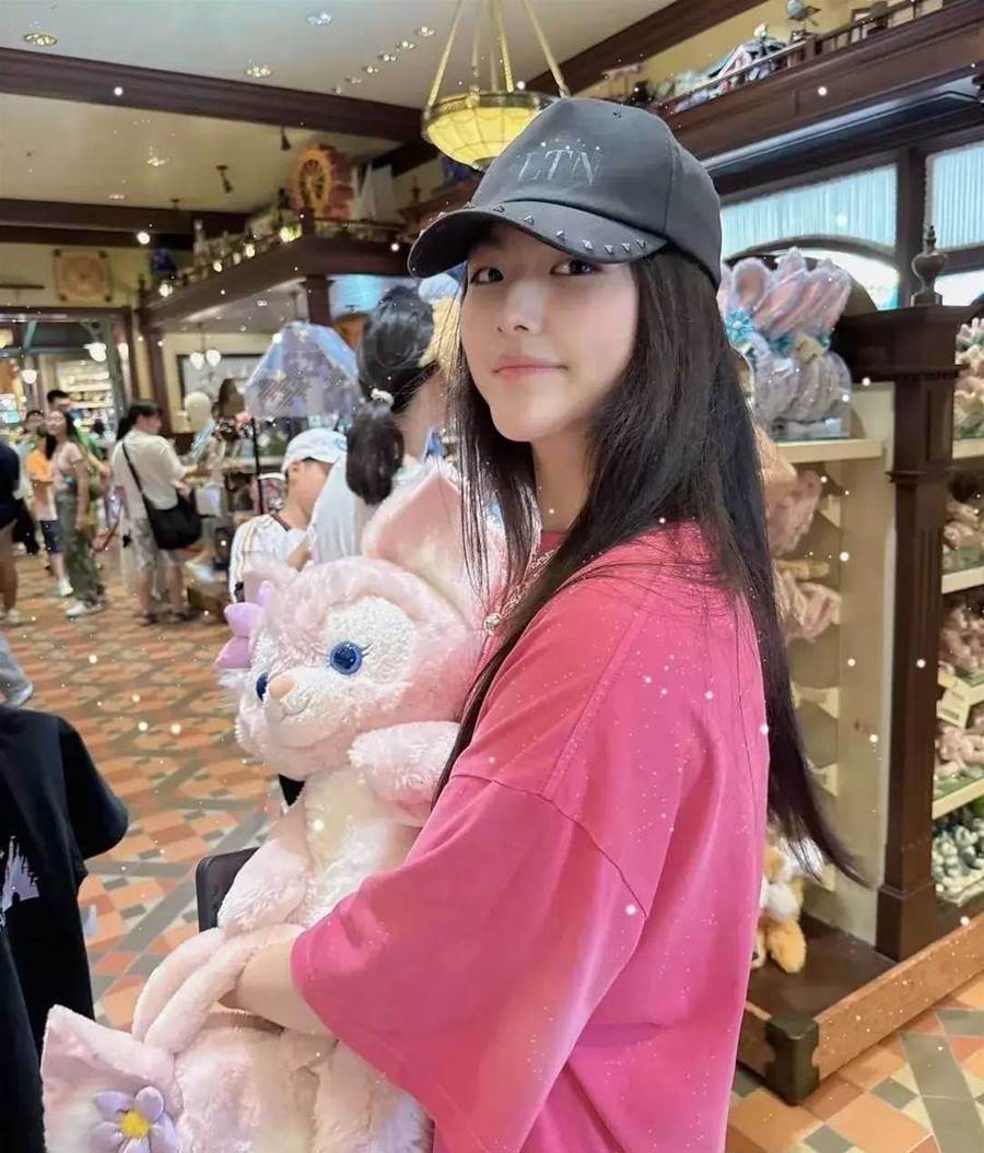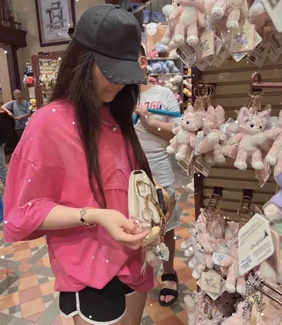 在李湘的鏡頭里,迪士尼的景色沒拍幾張,寶貝女兒王詩齡自然是唯一的主角,母女倆在戶外頂不住大太陽的烤曬,轉頭去了室內的店里看各種紀念品,王詩齡十幾歲的年齡,正是對這些可愛毛絨玩具抵抗不了的階段,剛到貨架前面,王詩齡就看中了一款粉色玩偶,萌態十足。