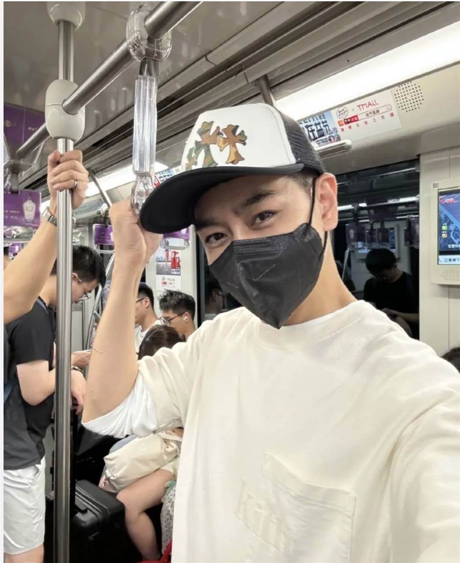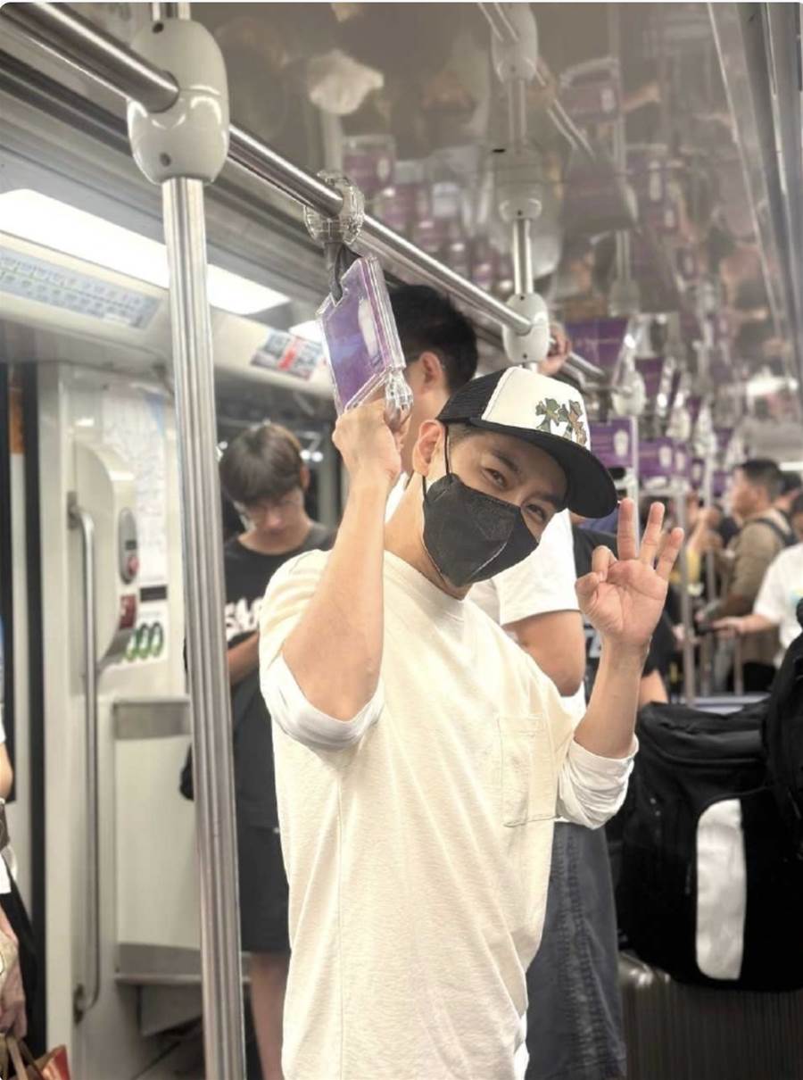 這次在捷運上,他還跟大家比耶,看著心情真的不錯。