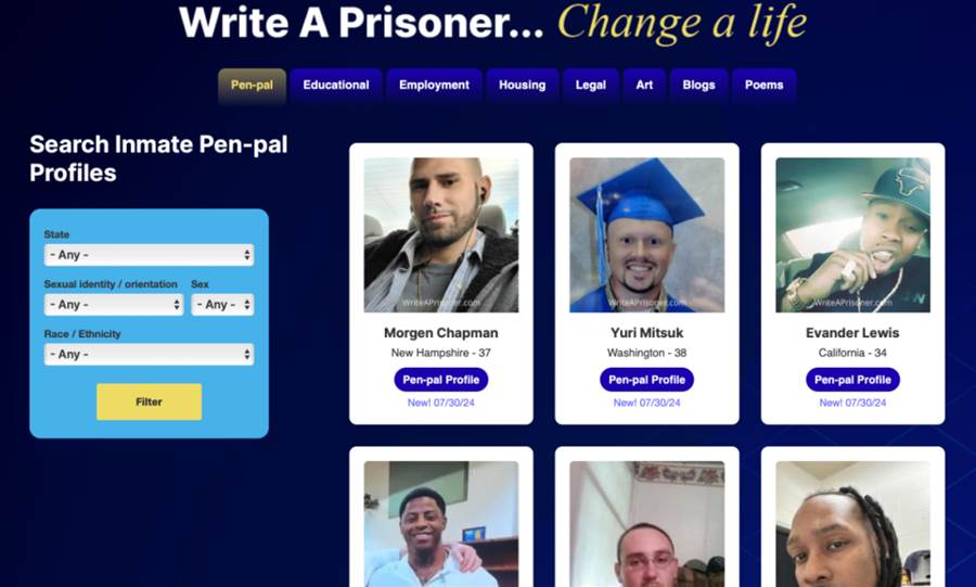 WriteAPrisoner是一個美國監獄為囚犯設置的寫信留言系統,僅對美國監獄服刑的囚犯有效。
