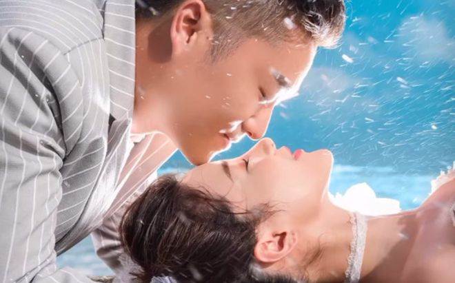 來到海邊之后,新娘平躺在地上,新郎趴在地上,跟新娘頭對頭,新娘閉著眼睛,新郎親吻著她的額頭。遠處的海浪兇猛的沖打著,一望無際。