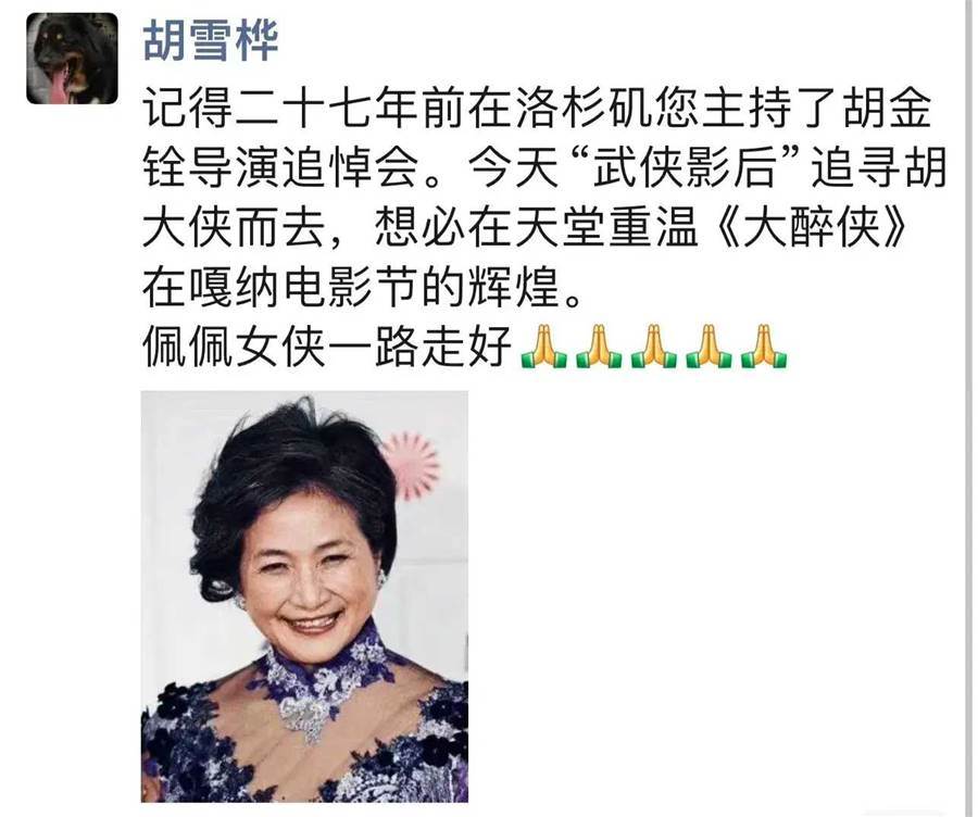好友曹可凡和知名導演接連發文,沉痛的悼念鄭佩佩,稱她是女俠,稱她是最好的人。