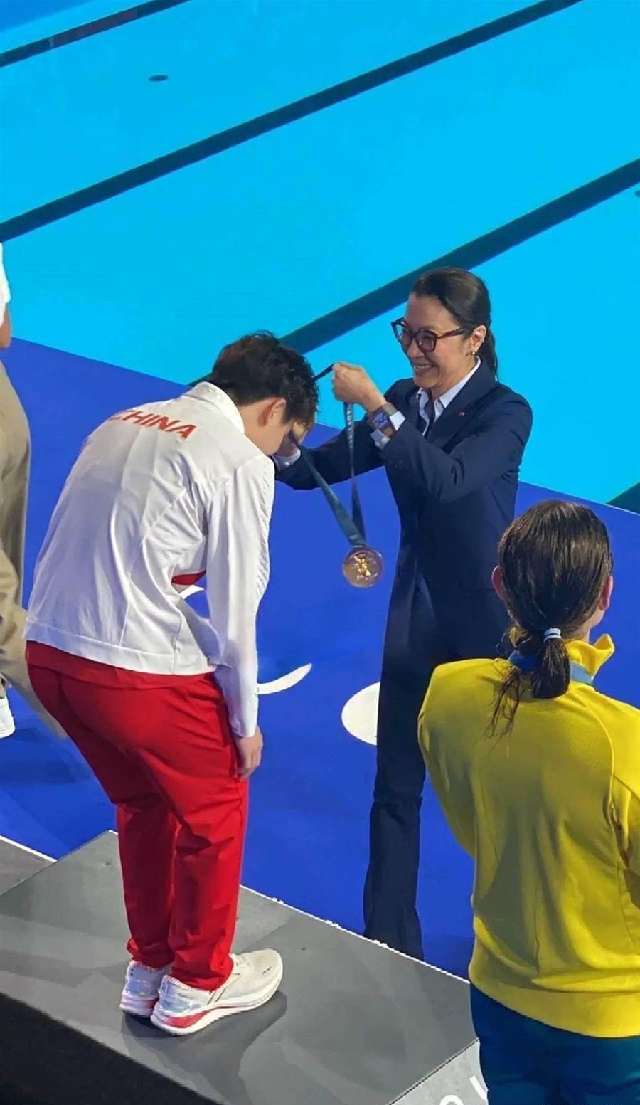 在2024年巴黎奧運會的跳水女子3米跳板決賽中,中國選手陳藝文憑借出色的表現摘得金牌,而她的隊友昌雅妮則獲得銅牌。然而,在賽后頒獎儀式上,令眾多觀眾感到意外的是,頒發獎牌的并不是普通的體育官員,而是曾獲得奧斯卡最佳女主角的著名華裔女星楊紫瓊。